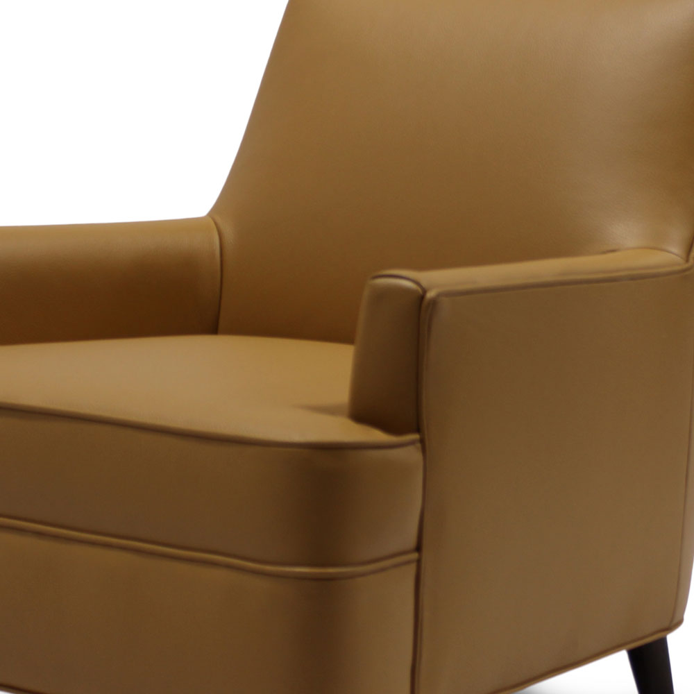Upholstered in luxurious material and supported by tapered wood legs, Somerset is built for comfort with a resilient tight back and plush seat cushion that invites relaxation without sacrificing style. Ideal as a statement piece or a complement to your living room ensemble, this accent chair blends tailored design with everyday functionality—crafted in the USA with precision and care.
